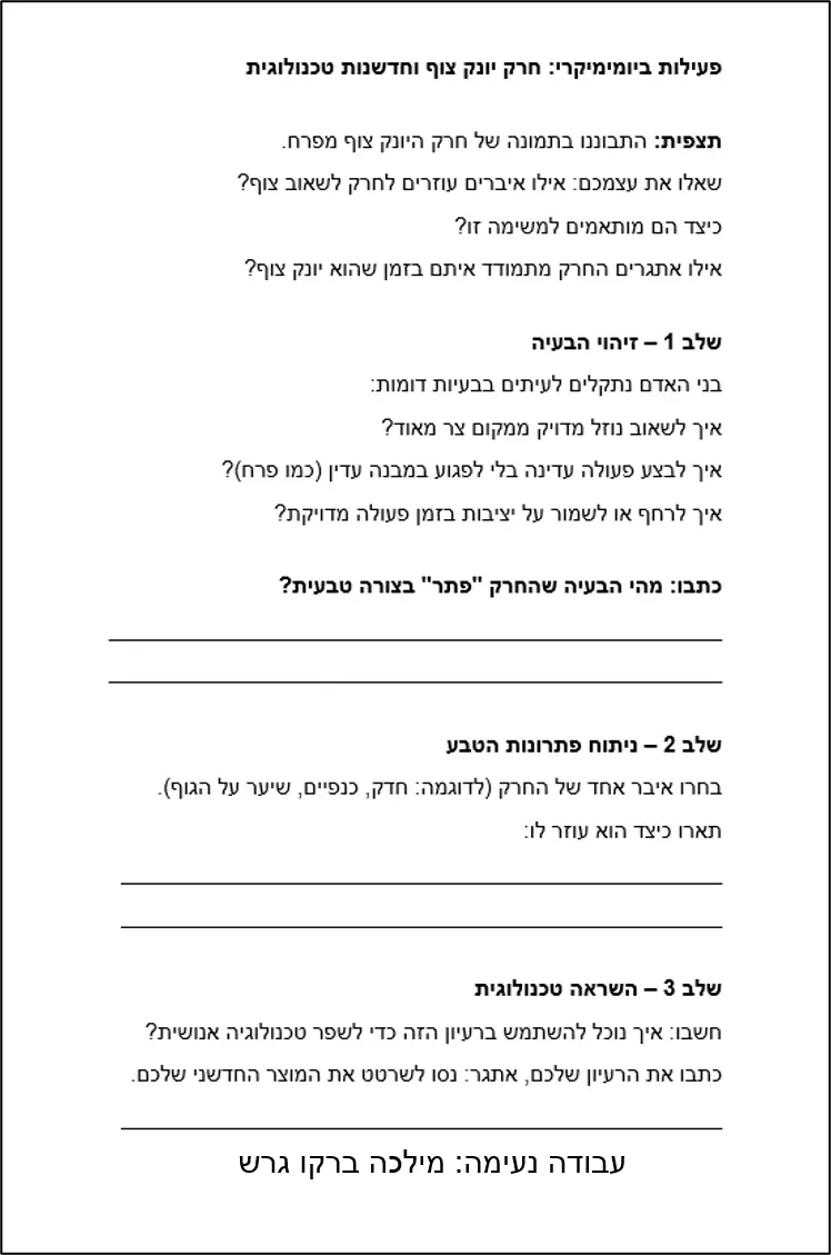 כך הטבע מלמד אותנו פתרון הנדסי חכם- ואם נלמד להתבונן בו, נוכל להמציא פחות, ולהעתיק מה שכבר עובד מושלם.