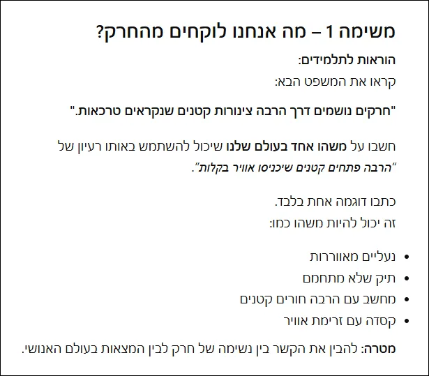 משימת יצירה – רעיונות אפשריים: