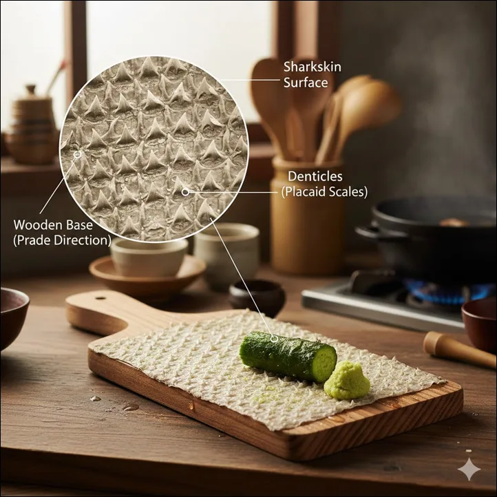 הסיבה העיקרית לשימוש במגרדת עור כריש ביפן היא המרקם הייחודי שהיא מספקת. לעור הכריש יש משטח מחוספס, כמו נייר זכוכית, שמאפשר לו לפרק את שורש הווסאבי למשחה עדינה במיוחד. משחה עדינה זו חיונית לשחרור מלא של הטעם והארומה של הווסאבי. כאשר הווסאבי מגורד על מגרדת עור כריש, התהליך שובר את תאי הצמח, שמתערבבים ומייצרים את הטעם החריף והטרי שהווסאבי ידוע בו. זהו משהו שמגרדות מתכת או קרמיקה לא מסוגלות להשיג באותה מידה.