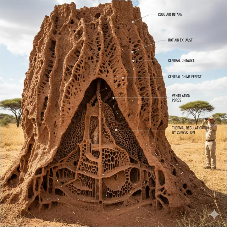 התכנון משתמש בשיטה של הטרמיטים ליצירת סירקולציית אוויר