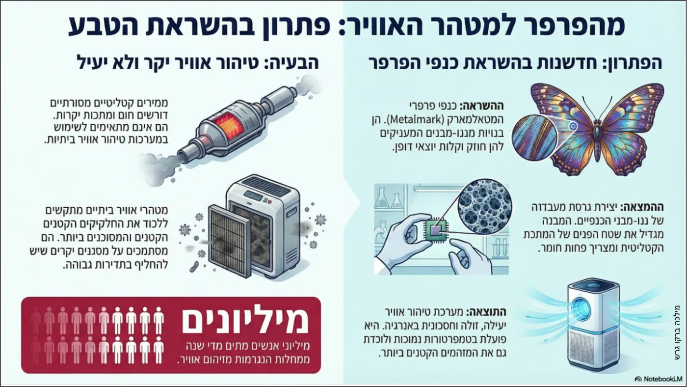 שיער על הגוף → השראה לחומרים שסופגים חלקיקים או מזהים מזהמים באוויר.